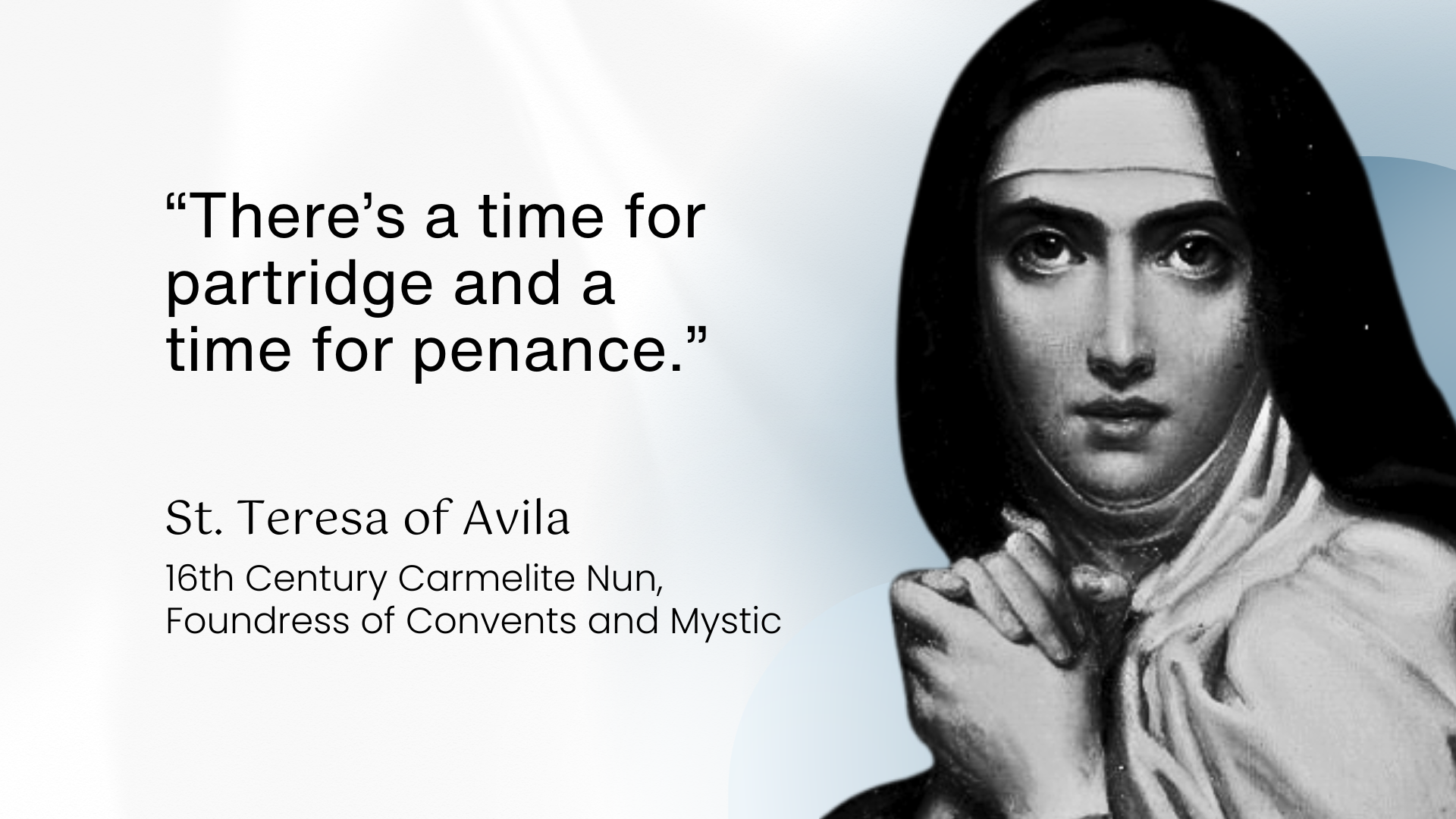 As a Carmelite nun in the 1500s, St. Teresa of Avila lived an extremely disciplined and penitential life. But she also recognized there was a time for “partridge” – a feasting delicacy of the time.
